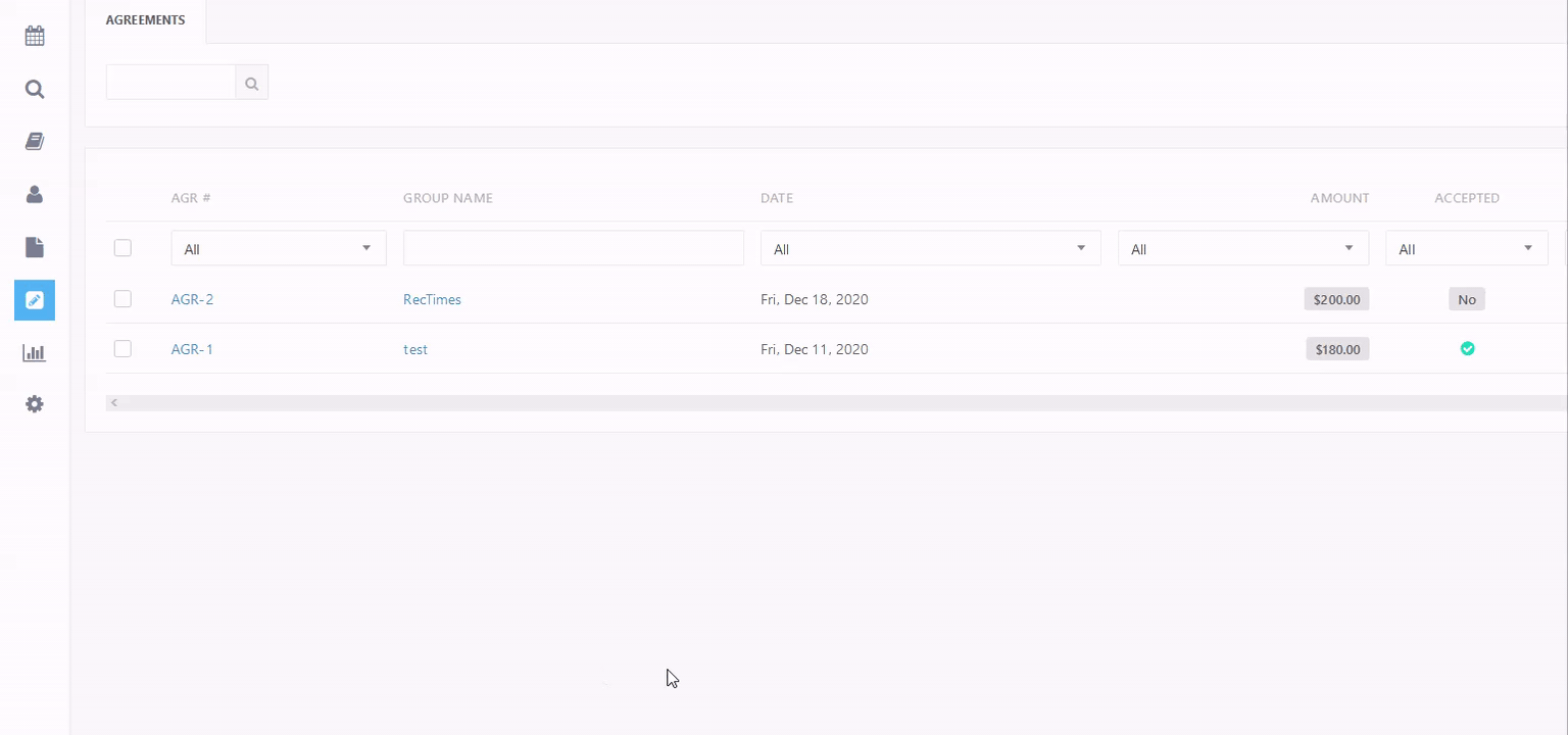 Go to the Agreements tab in the left-hand slide-out menu