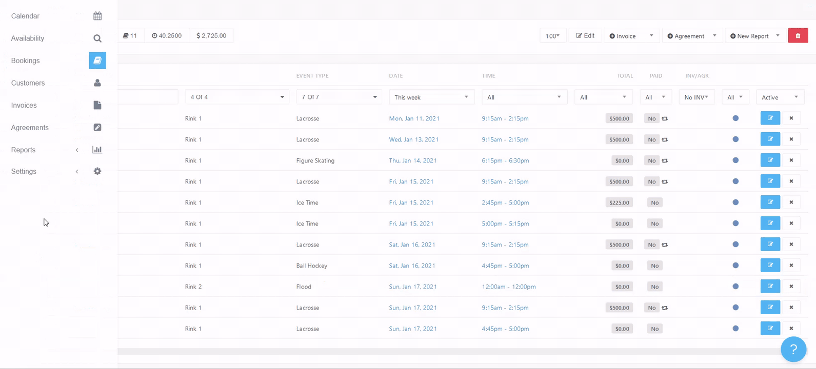 In the Bookings tab, select each booking you're creating an invoice for, then click +Mass Invoice in top right hand corner drop down menu.