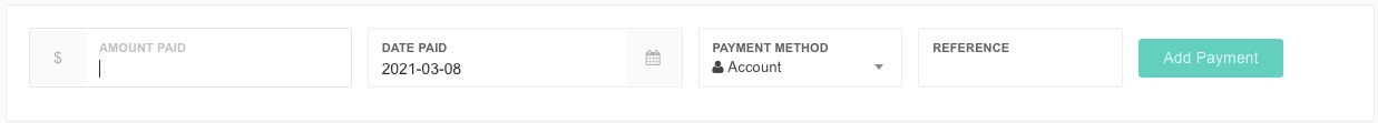 - Open the Invoice, near the bottom, you will see an option to add a payment.