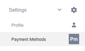 Once logged in, navigate to the left hand slide out menu > Settings > Payment Methods.