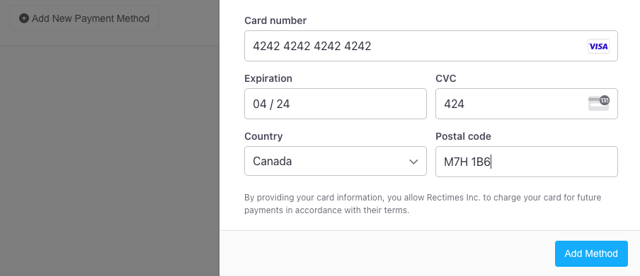 Select Add New Payment Method > Enter in card details and ensure information is correct > Add Method.