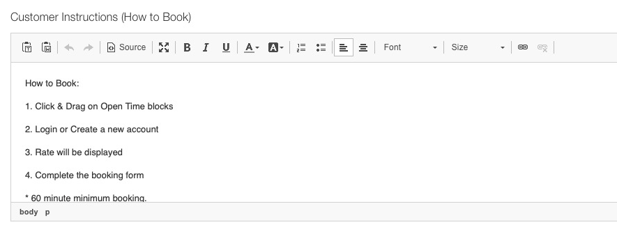 You can edit this in General Settings to guide your customers; whether you want them to contact you first, how to book online, request specific times, and more.